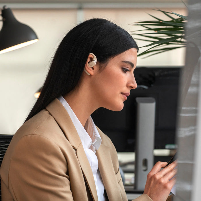 L’OpenFit poursuit le concept d'écouteurs à oreilles libres de Shokz avec un design d'écouteurs intra-auriculaires compact. L’OpenFit est conçu pour s'adapter autour de l'oreille, laissant le conduit auditif libre pour vous permettre de rester connecté au monde qui vous entoure.